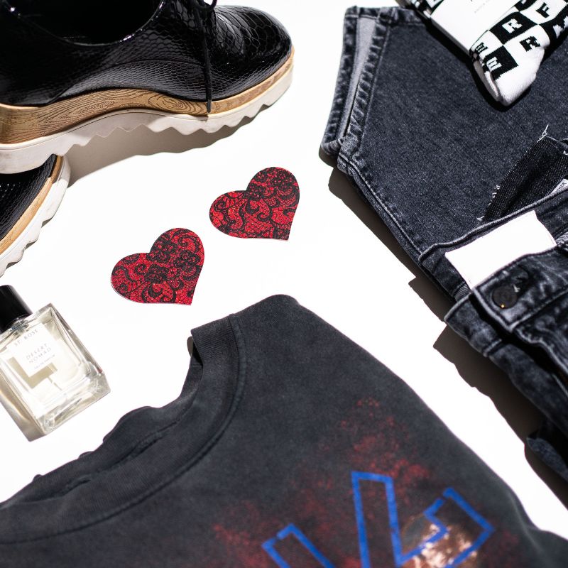 F*CKABLE' Heart Breast Pasties on Black Glitter Velvet by Pastease®
