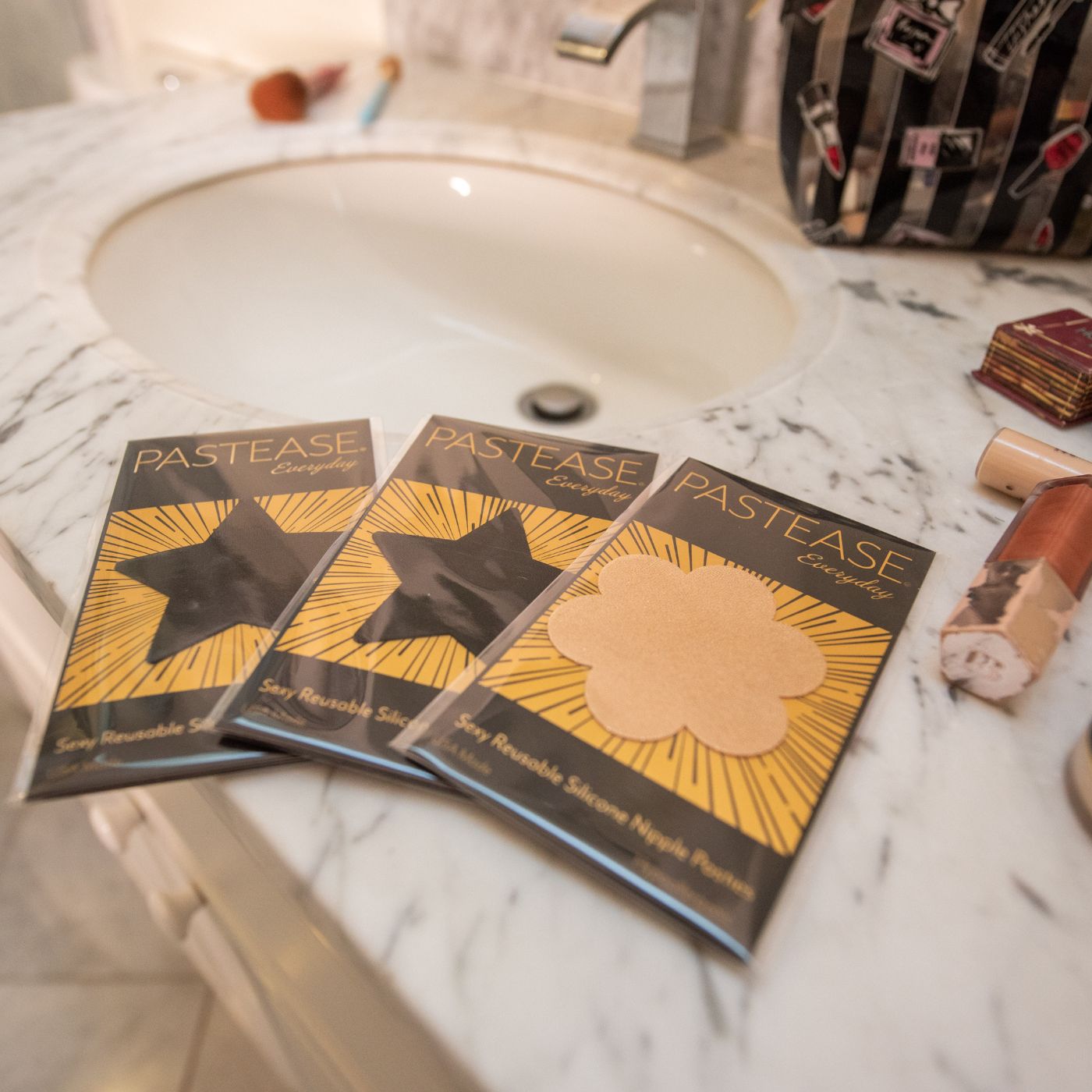 Conceal or Reveal with Pastease® nipple pasties when worn with a sexy outfit, daring bikini, sheer top, revealing dress, Hefty bag, body lotion, crazy costume, party theme or nothing at all!